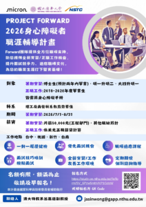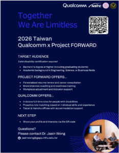清大 Project FORWARD:美光、台積電、NVIDIA、高通、Google|身心障礙學生實習與正職招募